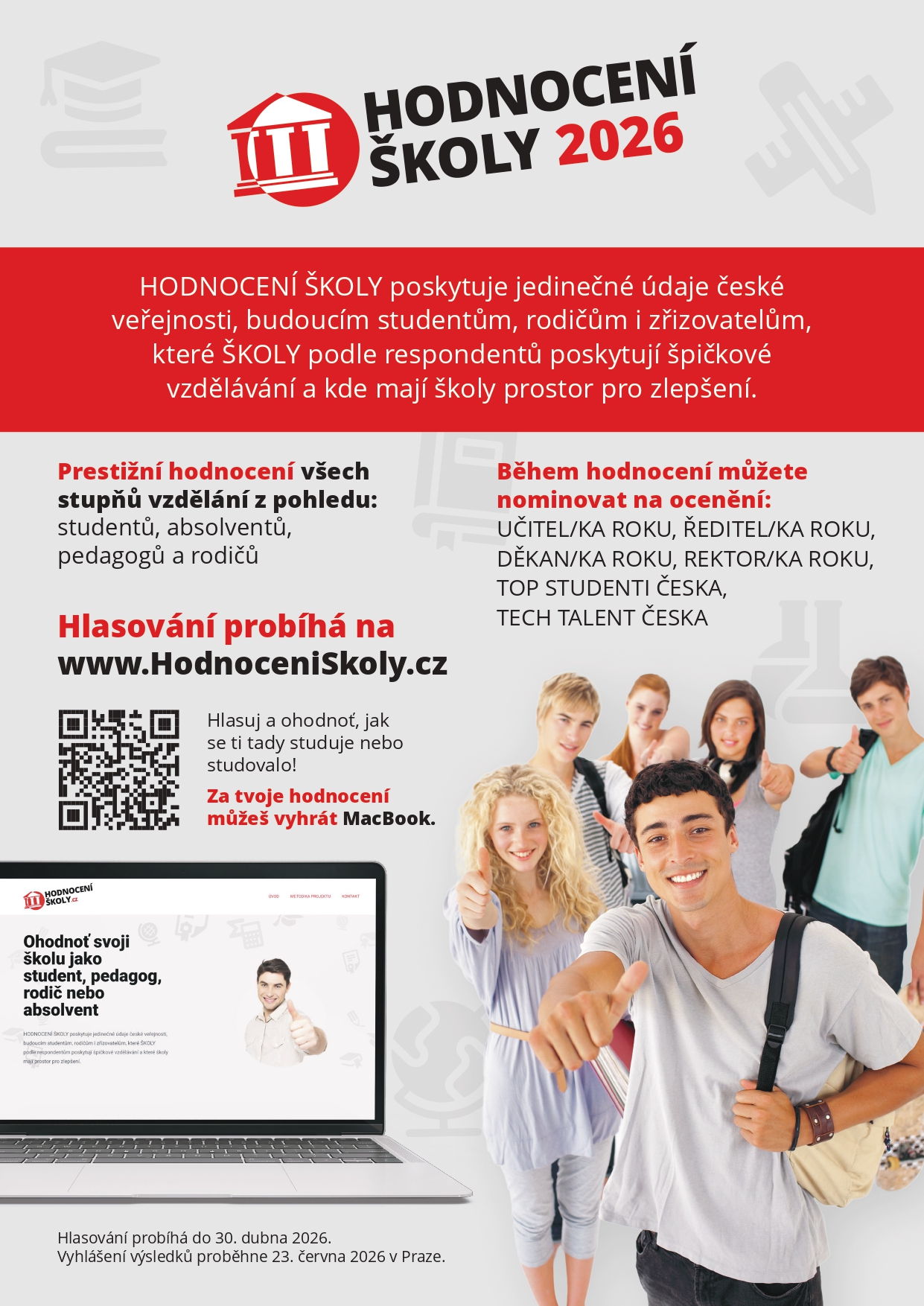 Hlasování se může zúčastnit kdokoli, kdo naši školu zná.